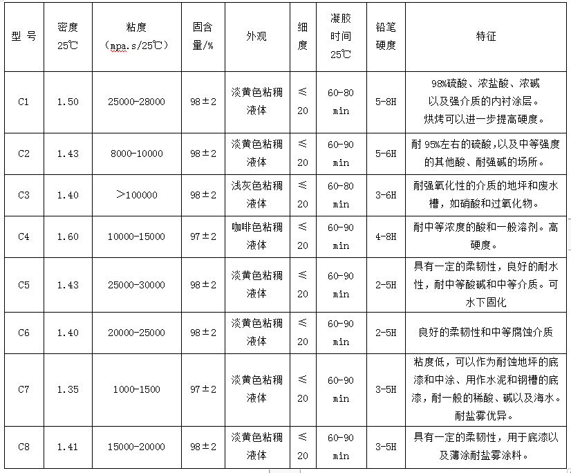 該樹(shù)脂配制的系列重防腐涂料滿足國(guó)際上更高的耐強(qiáng)化學(xué)腐蝕的行業(yè)標(biāo)準(zhǔn)性能要求,也是目前國(guó)際上******能夠承受?chē)?guó)際海事組織(IMO)批準(zhǔn)的高性能耐所有化學(xué)貨物腐蝕的涂料。