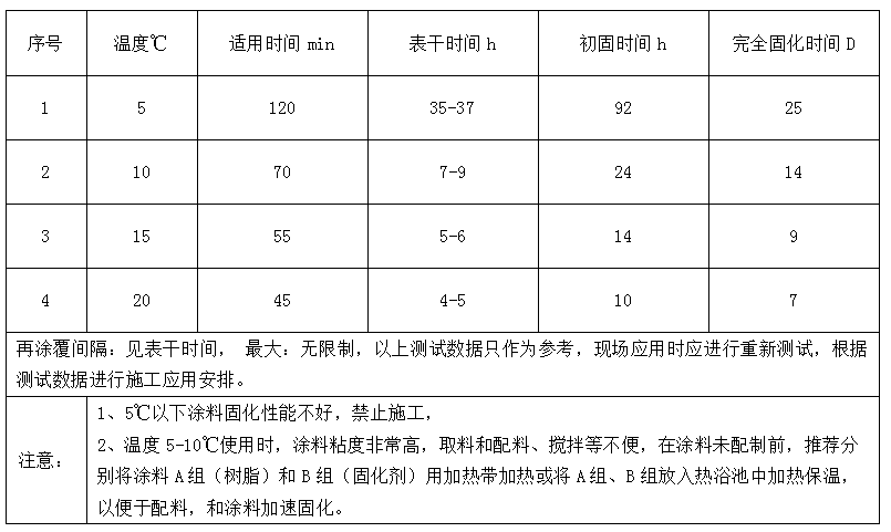 4. 材料的適用時(shí)間,超過(guò)適用時(shí)間,涂料粘度升高,造成涂層性能下降,或不能使用,