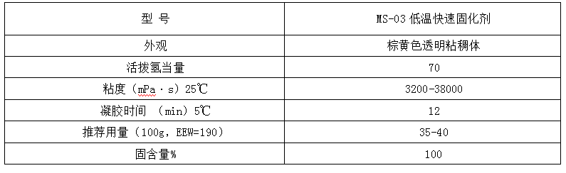 MS-03低溫快速固化劑主要技術指標